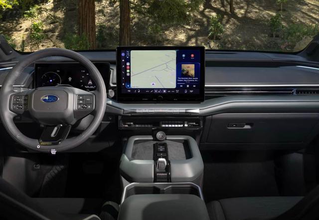 进入车内,斯巴鲁Getaway采用了黑色为主的配色方案,车内也基本延续了丰田纯电版汉兰达的布局,皮质座椅显得低调而有质感。黑色搭配以及很多带有纹理的皮革面料包裹,浑然天成,处处展现出日系车的工匠精神。宽大厚实的真皮座椅,还支持前排座椅和二排座椅加热、通风功能,不愧为“移动的大沙发”。中控台配备了14英寸中控屏和12.3英寸液晶仪表,还加入了HUD抬头显示系统,带来了最直观的视觉冲击力。软件部分,它还支持无线Android Auto和Apple CarPlay手机互联和15W手机无线充电。操控性方面,该车配备了真皮包裹的多功能方向盘,支持方向盘加热功能,操控岛也经过重新设计,配备了按键式换挡机构,后方的中央扶手箱配备了两个标准的杯架。